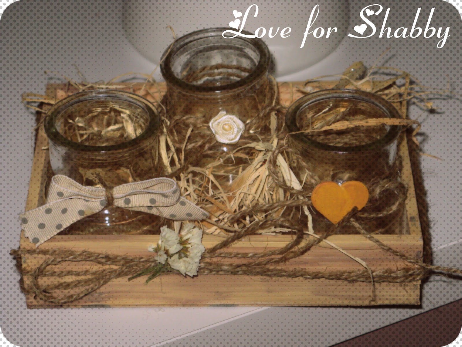 la seguente composizione è stata generata da un cestino in legno..anche lui invecchiato e tre vasetti portacandele